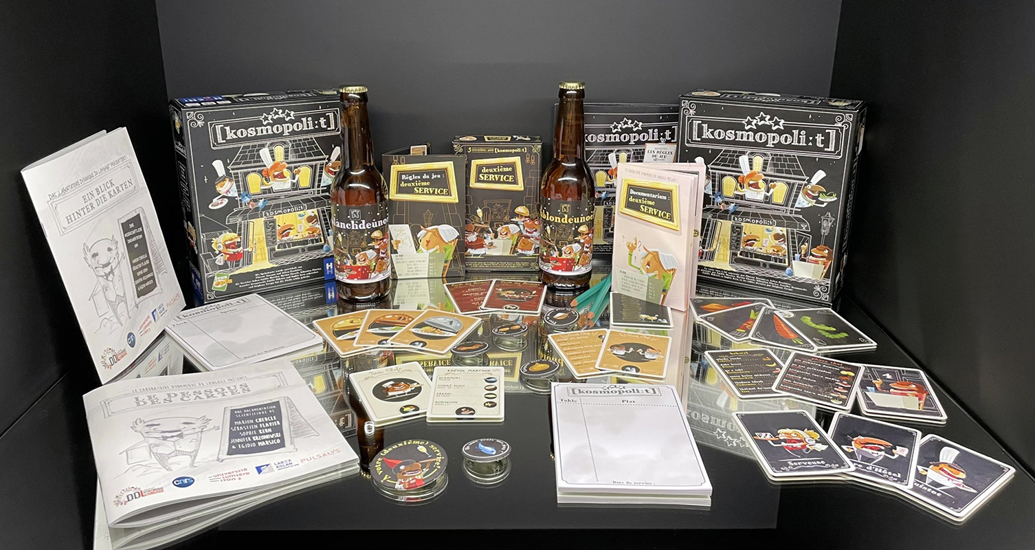 Saviez-vous qu’il existe plus de 7 000 langues dans le monde ? Et que certaines ne sont parlées que par quelques dizaines de personnes ? C’est à cette diversité linguistique souvent méconnue que le jeu de société [kosmopoliːt] invite à prêter l’oreille. Fruit d’une collaboration du Laboratoire dynamique du langage1  et de la maison d’édition lyonnaise Jeux Opla, ce jeu transforme la recherche en une aventure coopérative autour de la pluralité linguistique du monde. Les joueurs incarnent le personnel d’un restaurant où les clients passent leurs commandes dans leur langue d’origine. À partir d’enregistrements authentiques réalisés par des locuteurs natifs et diffusés via une application mobile, il faut comprendre, transmettre et servir le bon plat. De l’inuit au basque, 60 langues issues des cinq continents se croisent de la salle de service aux cuisines.