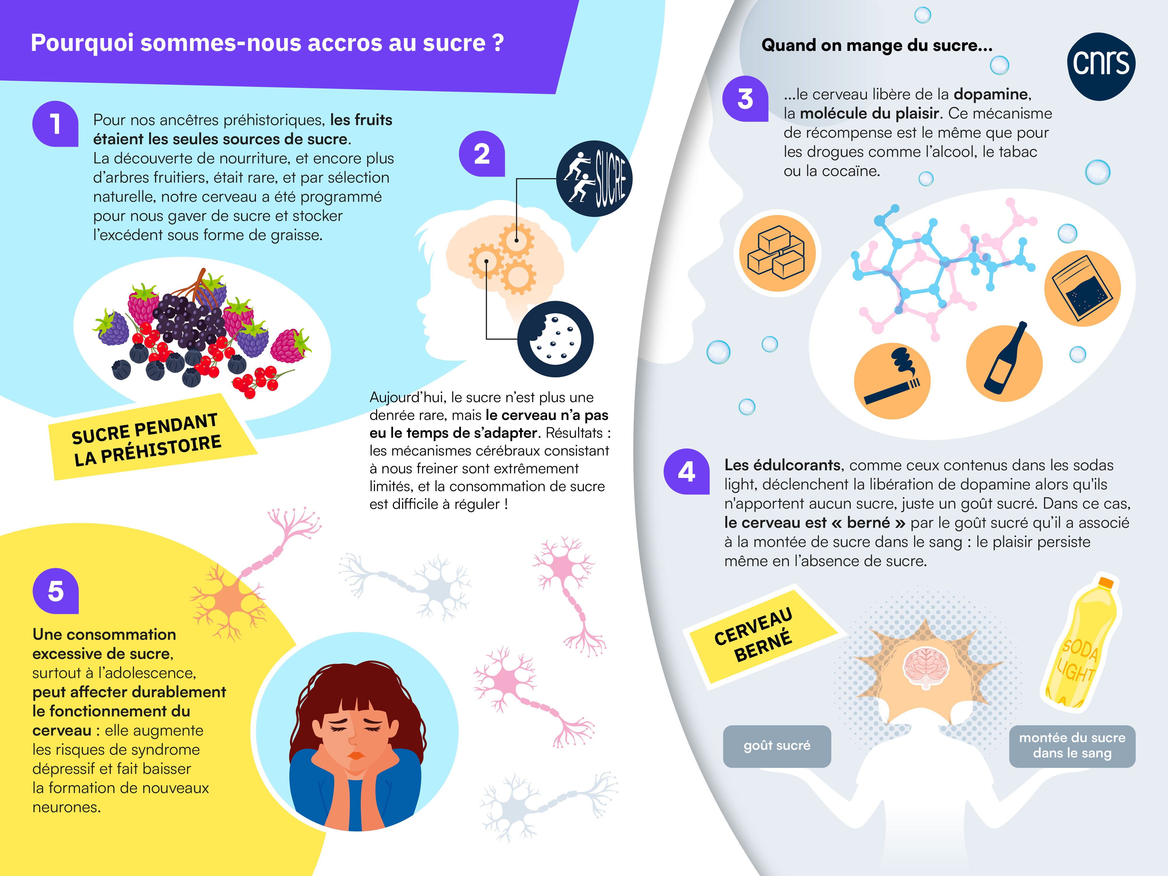 Quand vous commencez à piocher dans un paquet de bonbons ou de gâteaux, vous ne pouvez plus vous arrêter ? Les vitrines des pâtissiers vous font saliver ? Non, vous n’êtes pas simplement gourmand, c’est votre cerveau qui vous incite à consommer toujours plus de sucre. Explications en images.